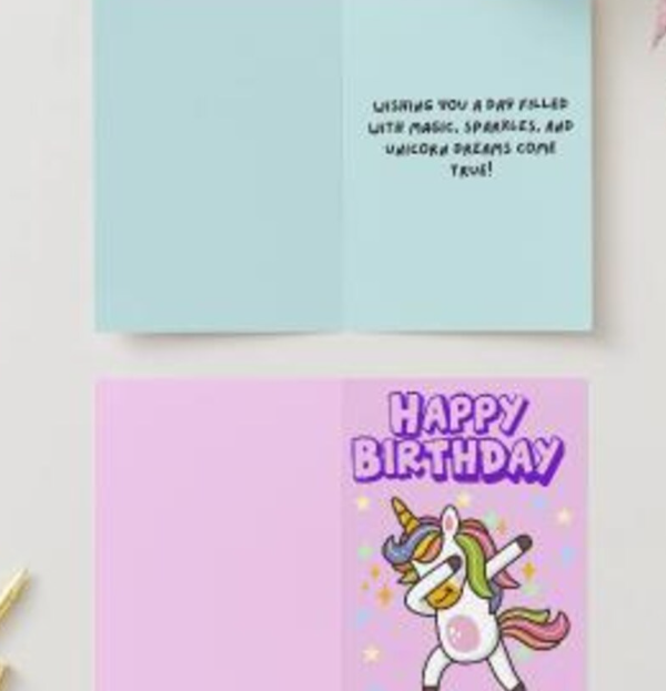 Downloadable- Printable Unicorn Foldable Birthday Card 5x7 in size