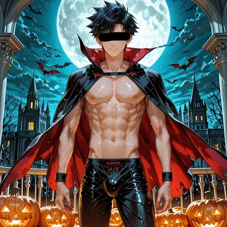 サウナで「ハロウィン」をテーマに、ヴァンパイアの男らしいキャラクターの魅力を思い切って表現しました。