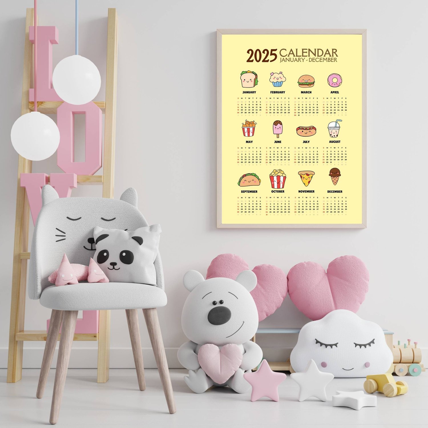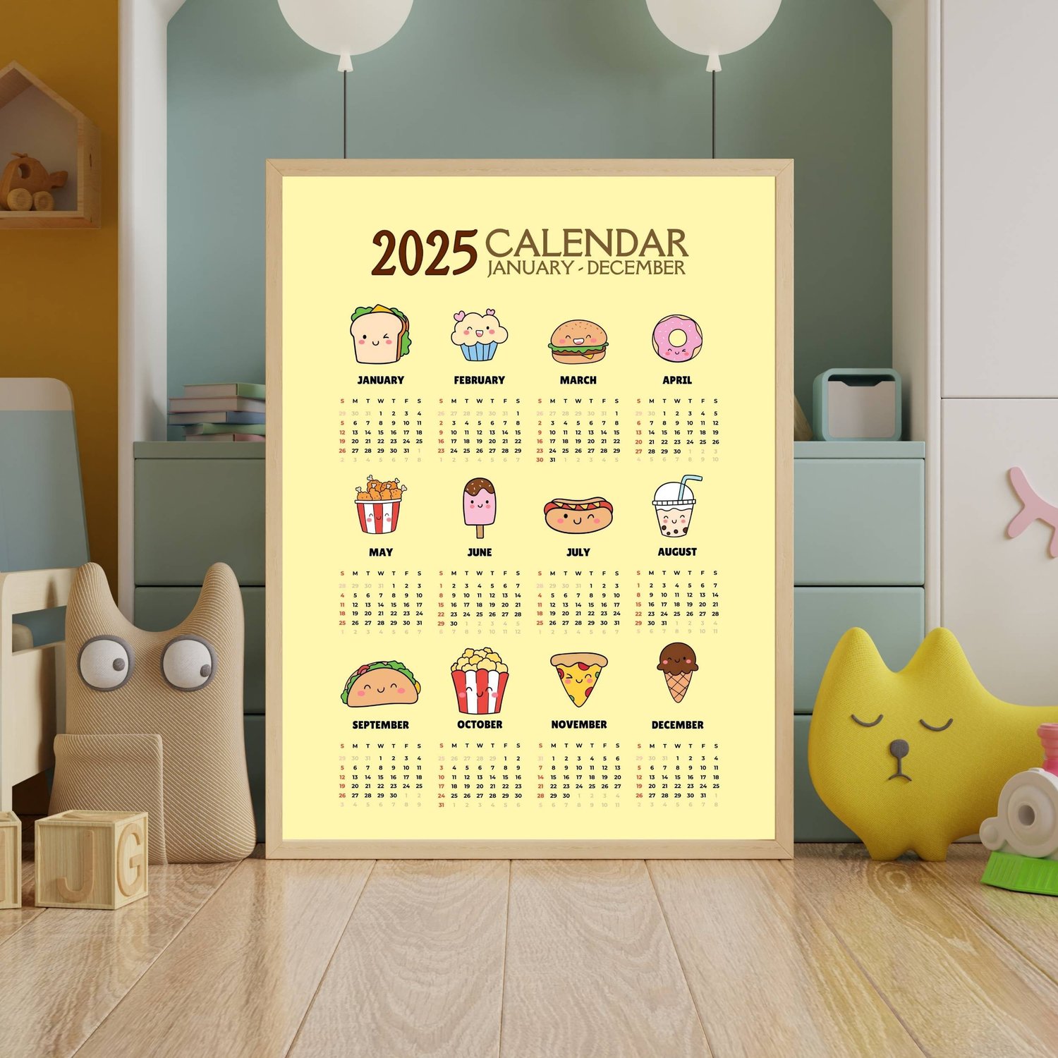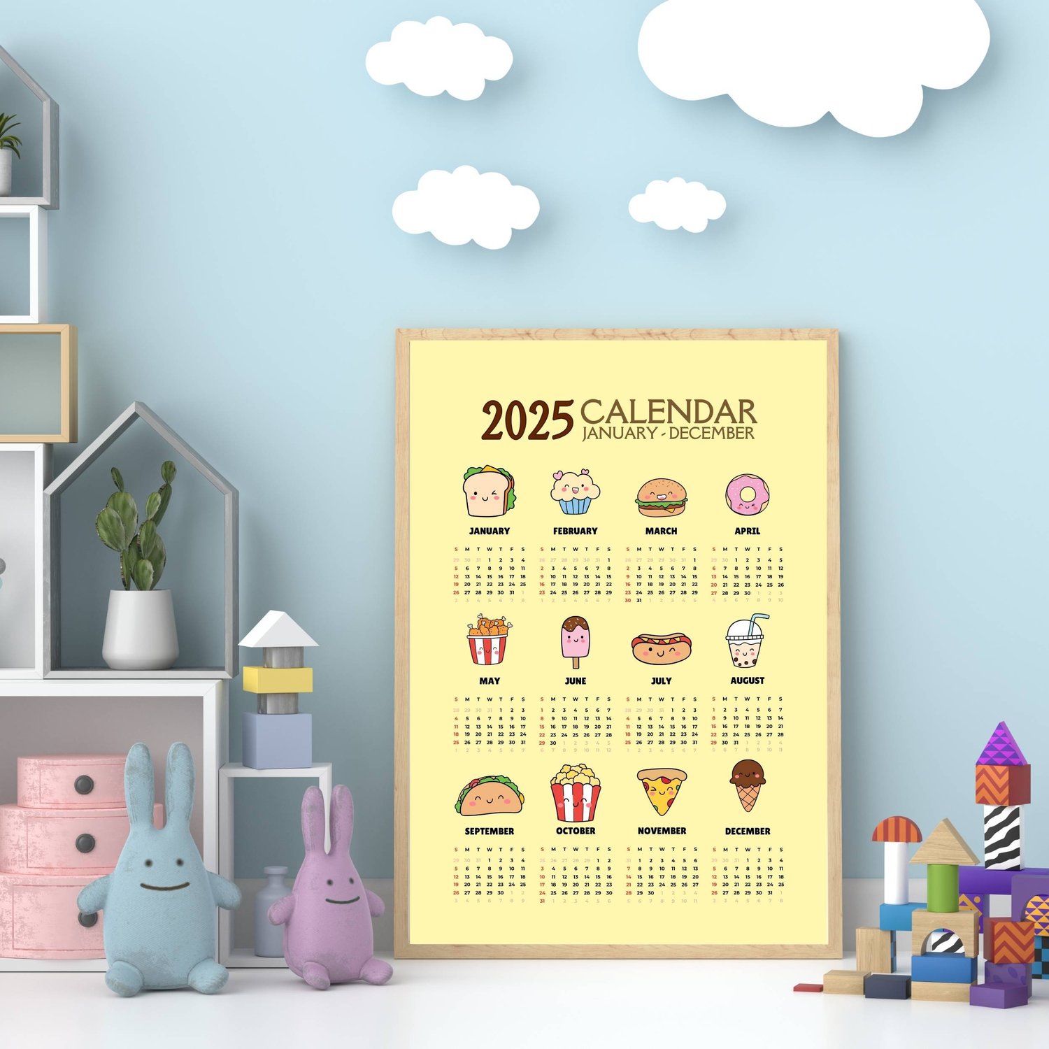 Fast Food Calendar 2025, Digital Calendar, Yearly Calendar 2025, Digital download