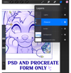 This base pack only comes in PSD form, one specific to Procreate, and a transparent PNG. Please do not purchase/download if your art program is not compatible with this file type!
