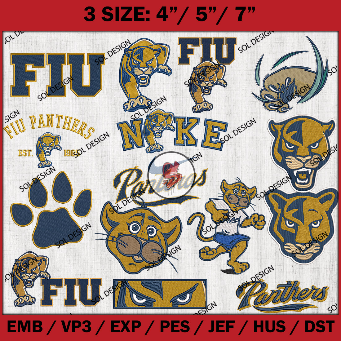 15 Florida International Panthers Bundle Embroidery Files, College Football Embroidery Designs, NCAA Florida International Panthers Machine embroidery Design Bundle, Ncaa FIU Panthers Logo bundle, Digital Download