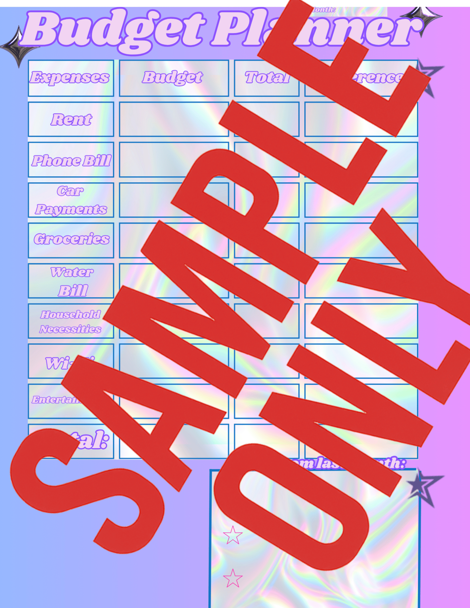 💫 Holographic Budget Planner – Digital Download