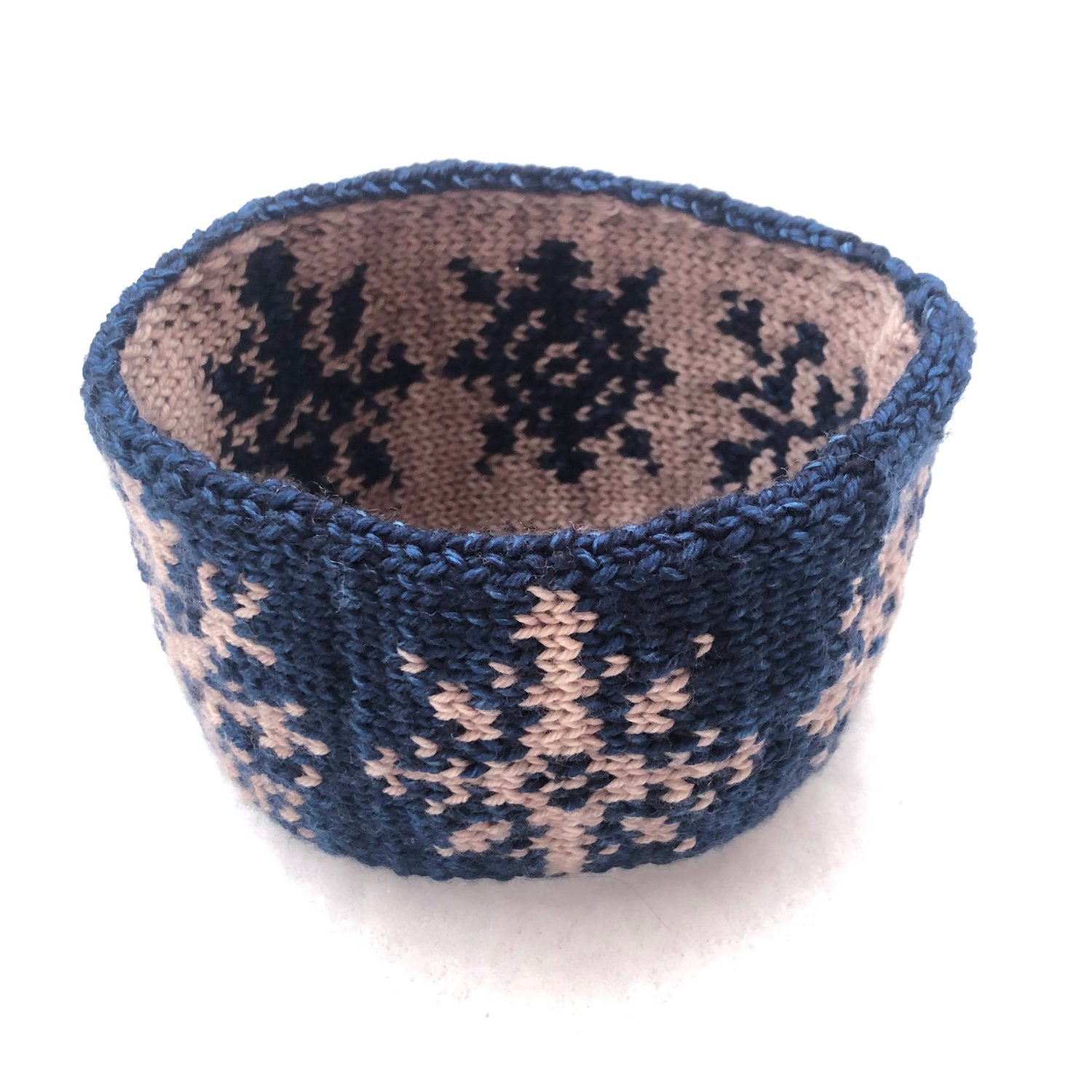 This headband is worked in double knitting as a long rectangle that is sewn together in the end using the Kitchener stitch. It can easily be made smaller by working fewer snowflakes.