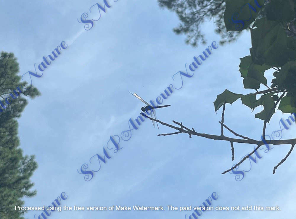 Amateur photograph of a Pondhawk Dragonfly as its resting on a tree branch and silhouetted against the clear blue sky. Can be used as a background image. Image taken in Virginia, USA. Image pixels 3019x2237. Image easily resized as required for buyer needs. Purchase gives image without any watermark.