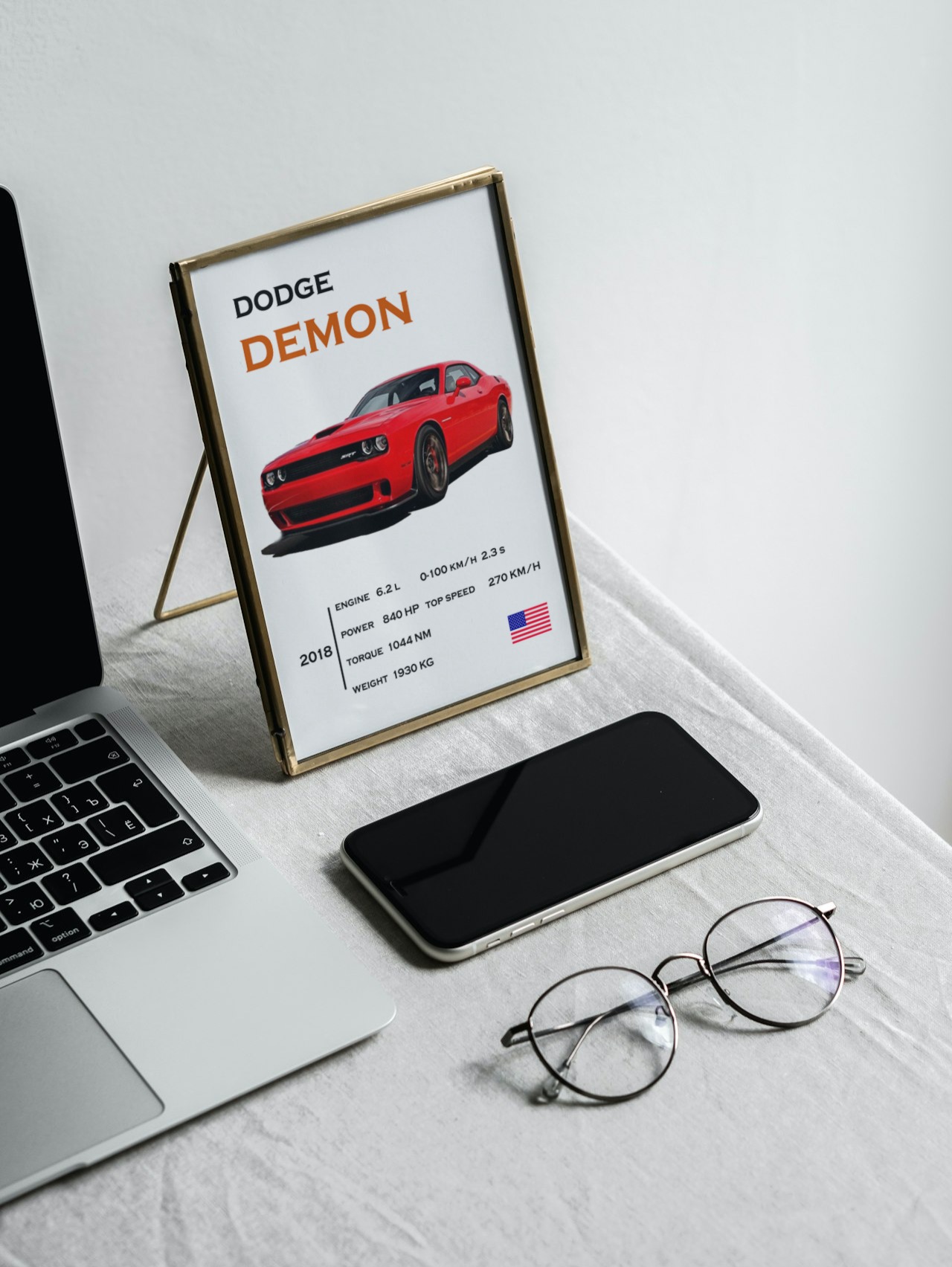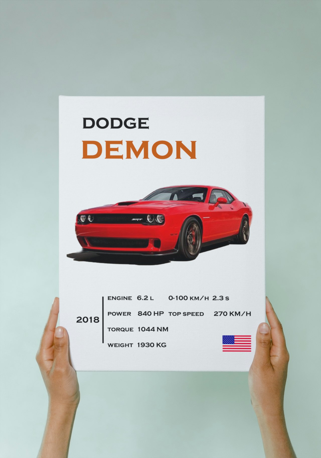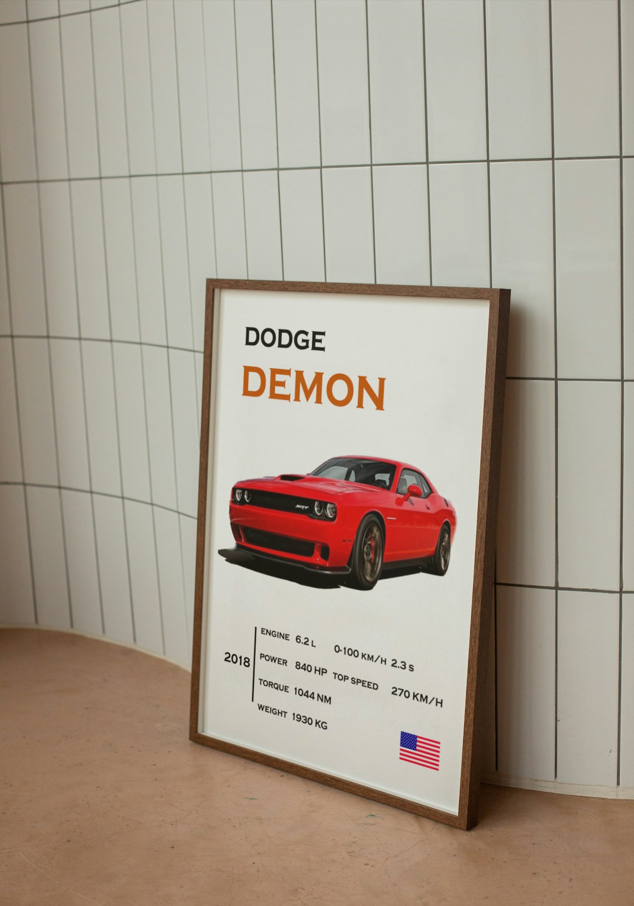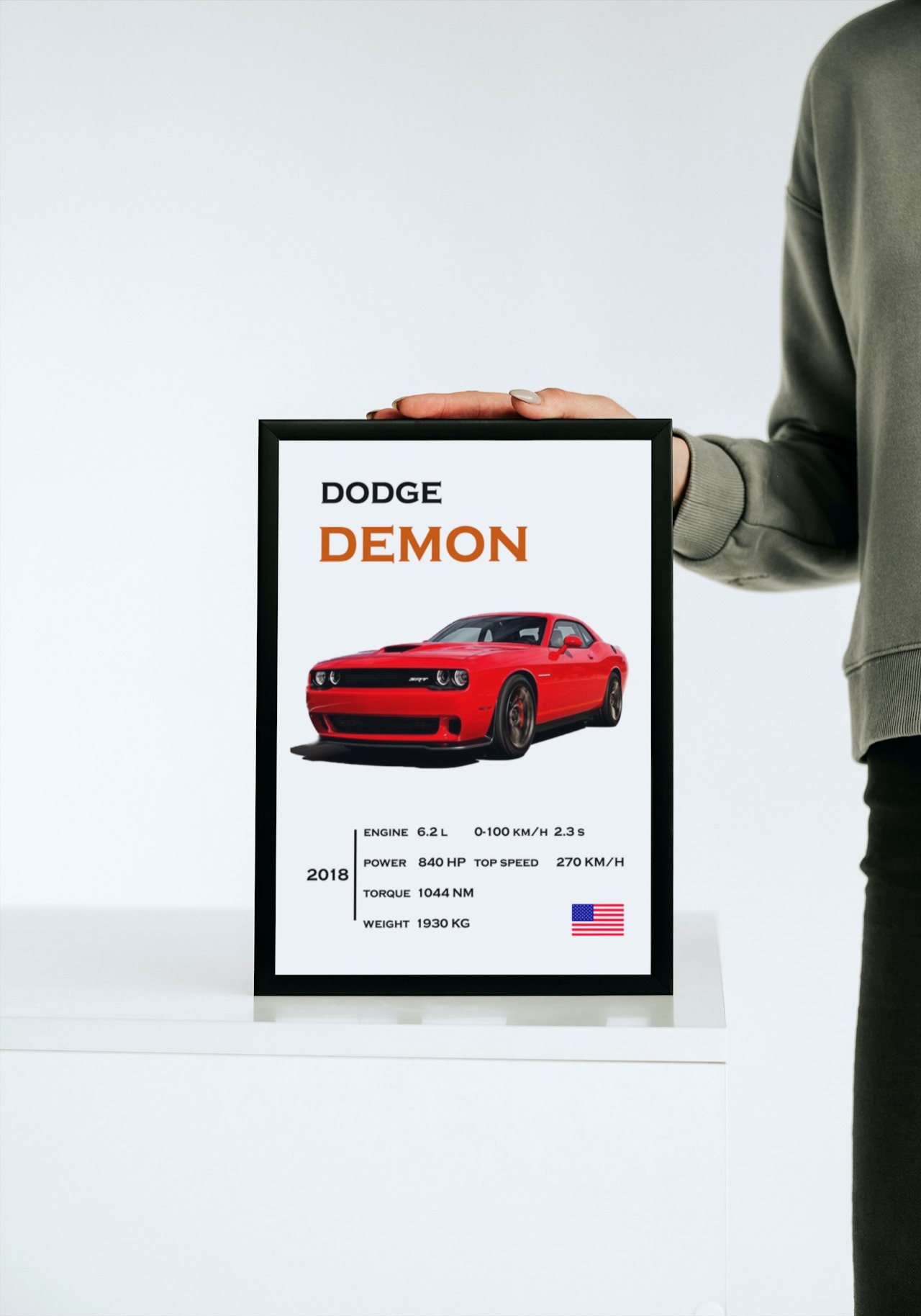 Featuring high-quality imagery and a bold layout, this poster is perfect for any car enthusiast who appreciates the raw strength and thrill of the Dodge Demon.