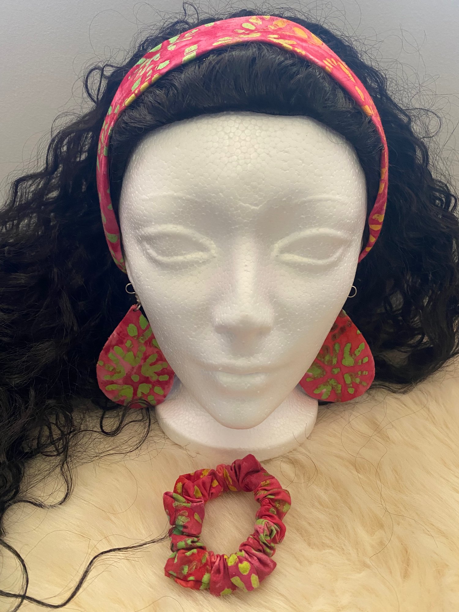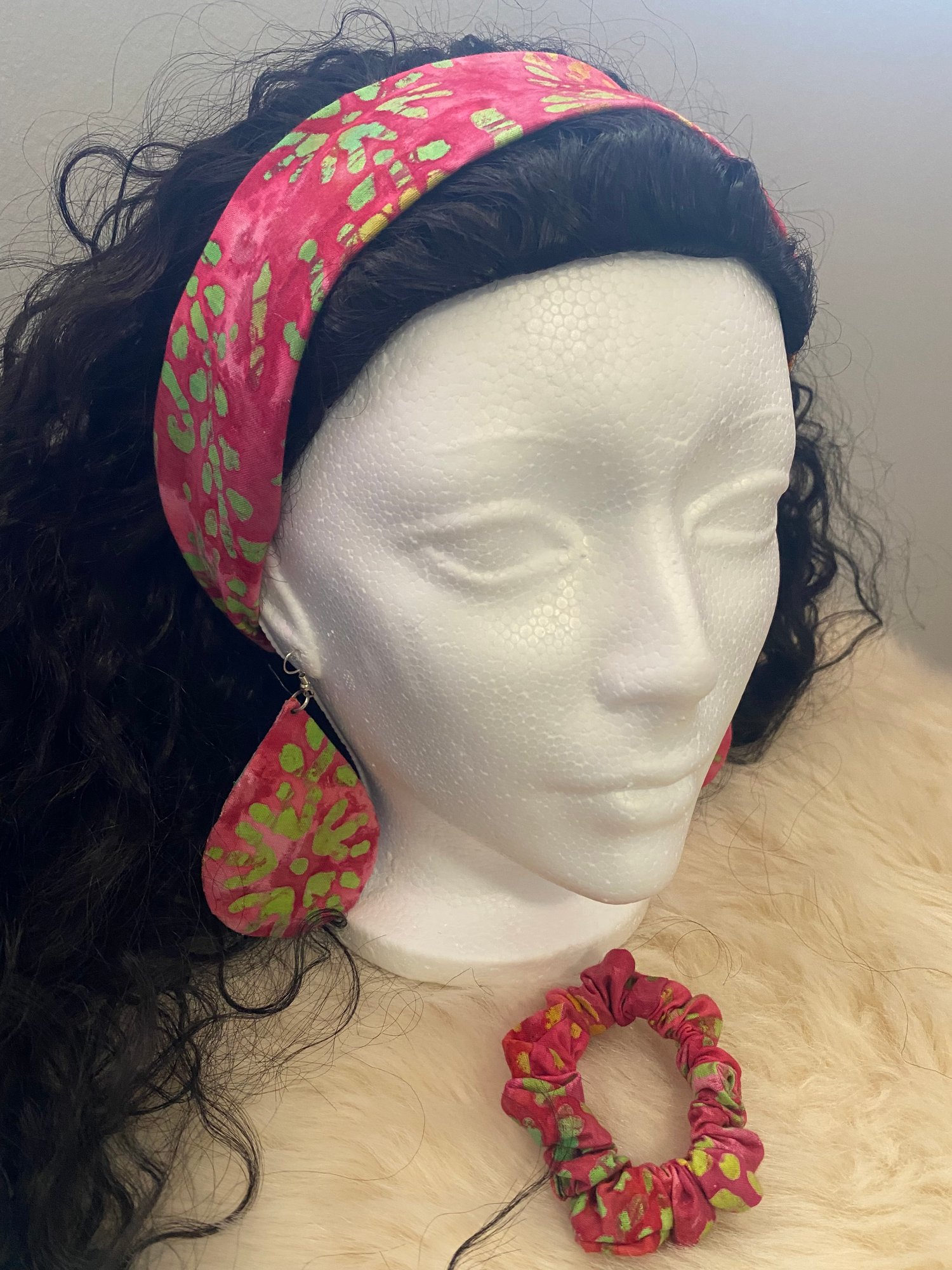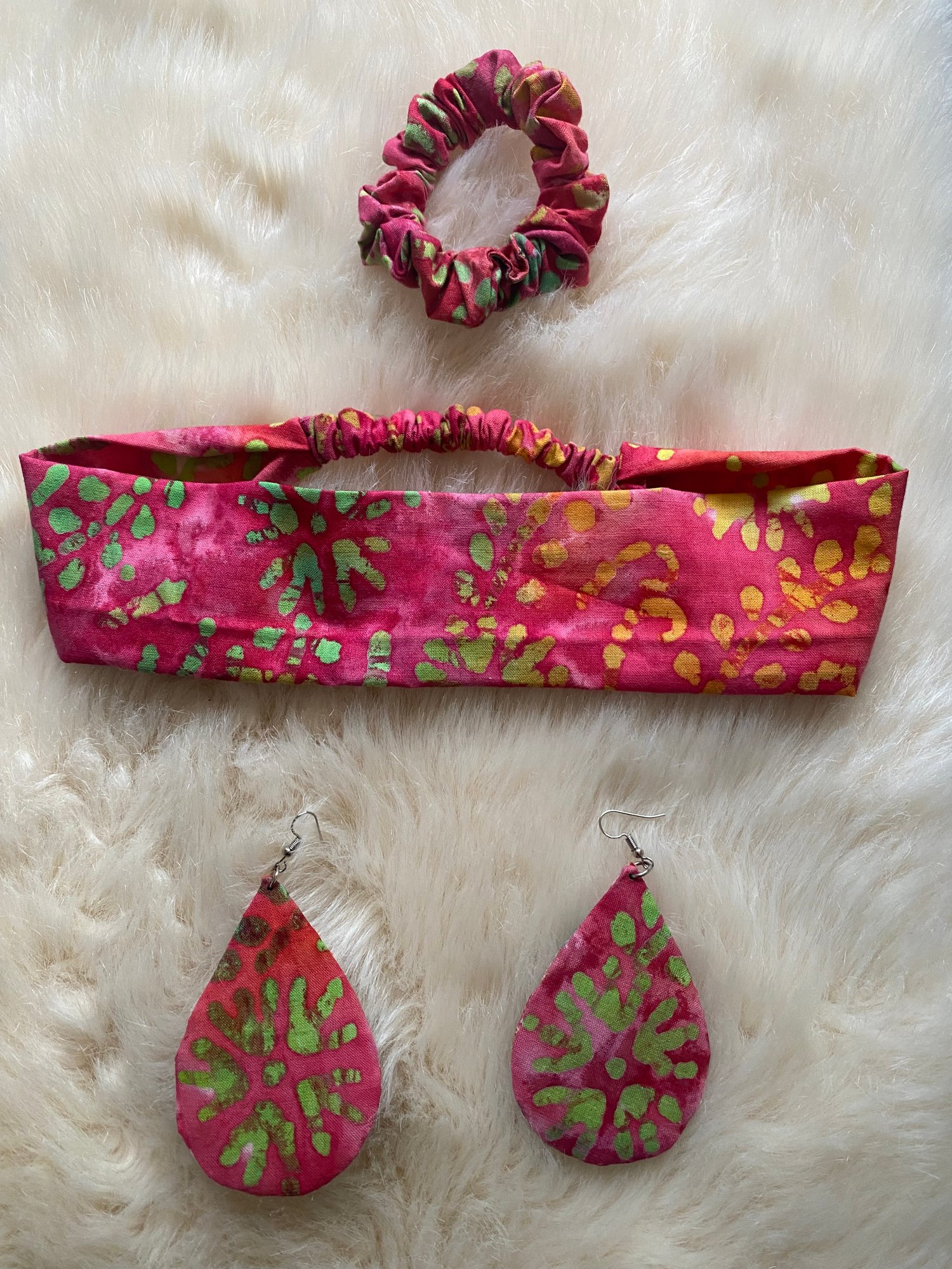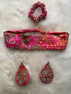 Pink Batik tie-dye Accessory Set - Headband, Scrunchie & Earrings