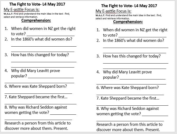 Part 4 Level 4 NZ School Journal Response sheets - editable