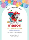 This Marshall Paw Patrol themed invitation is perfect for your occasion!