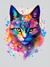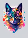 5 Cats with flowers splash, pastel tetradic colors watercolor V2
