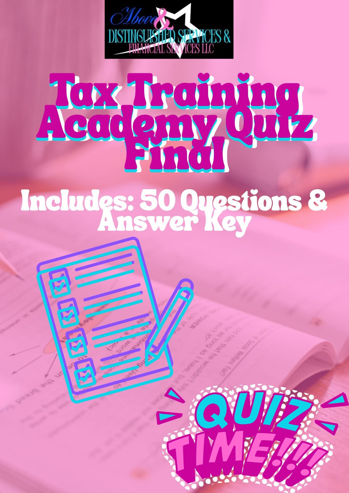 Perfect for reinforcing learning, preparing for certification, or evaluating overall mastery, this quiz is a valuable capstone tool for any tax education program.