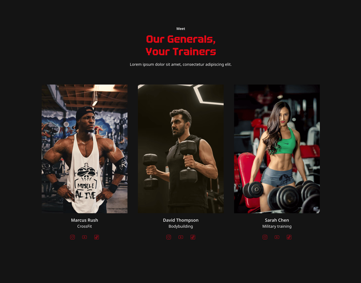 - Trainer showcases that positions your staff as "Generals" - not just random fitness instructors