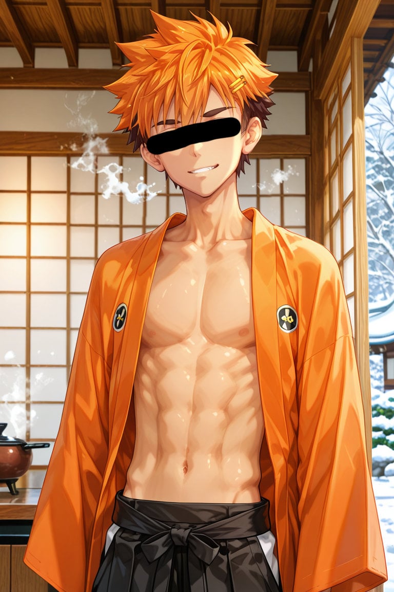 日本の正月をテーマに、着物を着用している男性を、キャラクターごとにお任せ作成しました。男らしいキャラクターの魅力を思い切って表現しました。