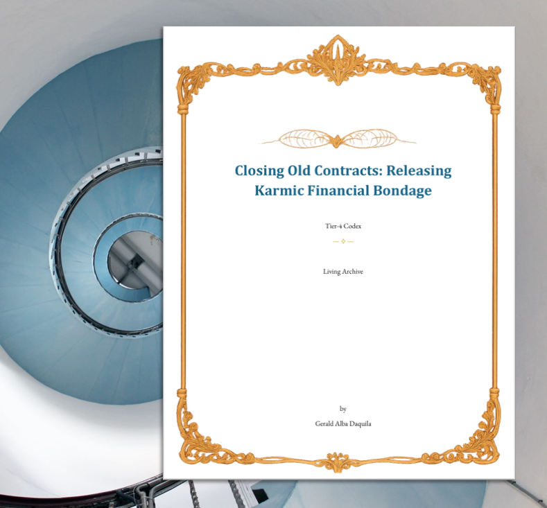 The T4 Codex discusses the release of karmic contracts that bind individuals and generations to cycles of scarcity and lack. Through spiritual practices, practitioners can acknowledge, witness, and revoke these agreements, reclaiming their sovereignty. It emphasizes collective liberation, calling for new systems of equality and abundance rooted in truth and divine stewardship.