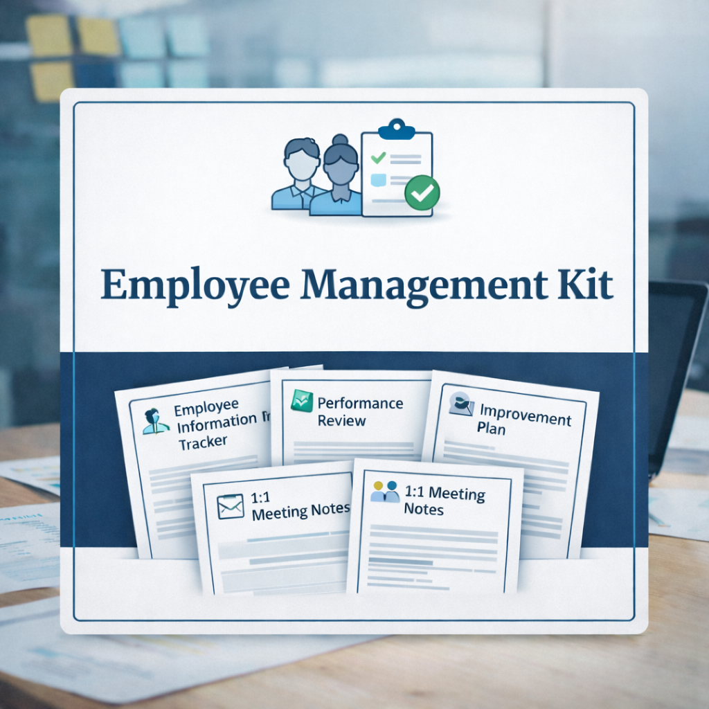 The Employee Management Kit provides a small set of practical, editable templates designed to help teams document employee information, support performance conversations, and create consistency around people management—without overcomplicating the process.