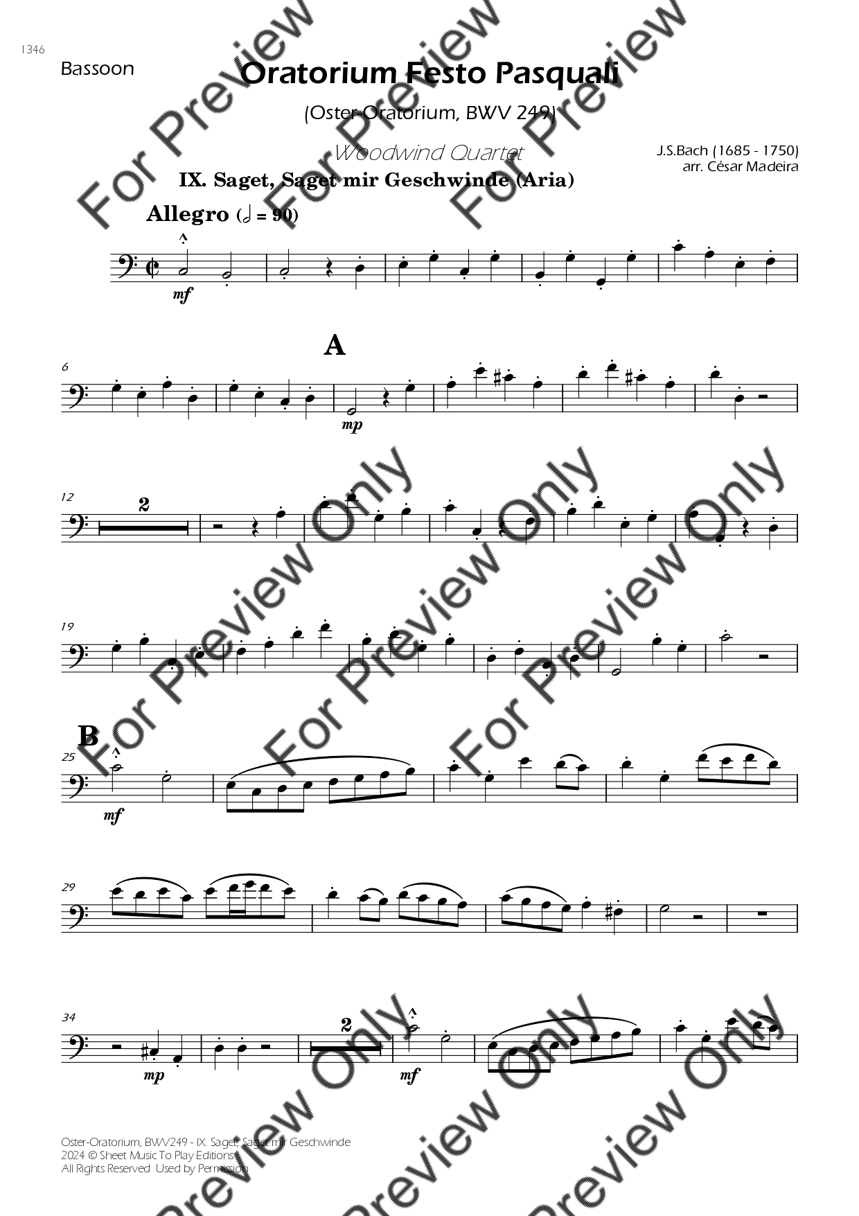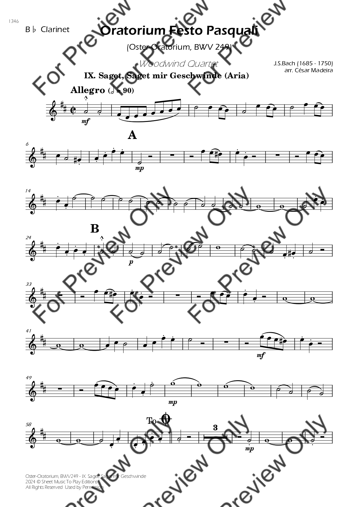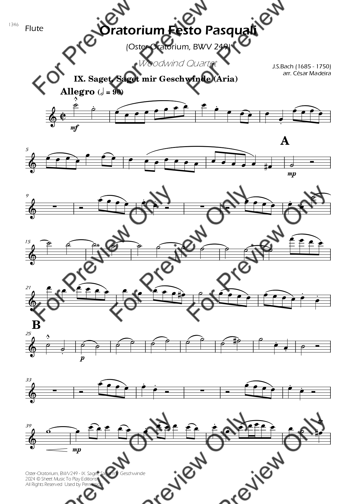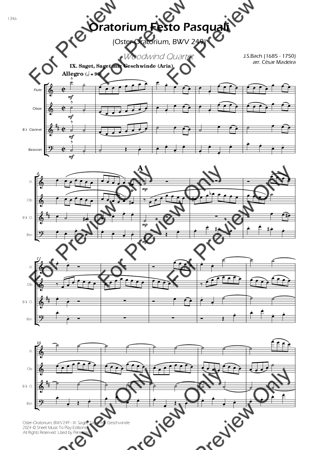Aria from Oratorium Festo Pasquali - Oster-Oratorium, BWV 249 by Johann Sebastian Bach. Arrangement for Woodwind Quartet - Flute, Oboe, Bb Clarinet and Bassoon. With Full Score and Individual Parts. Have fun!