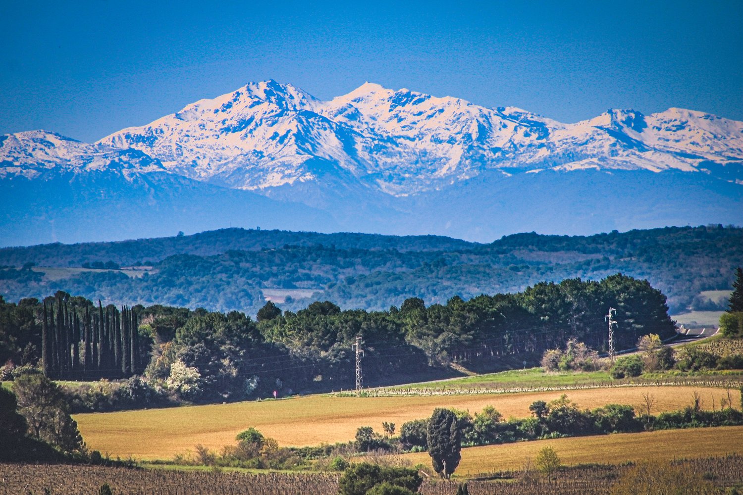 Pyrenees from the French Countryside — Near Carcassonne