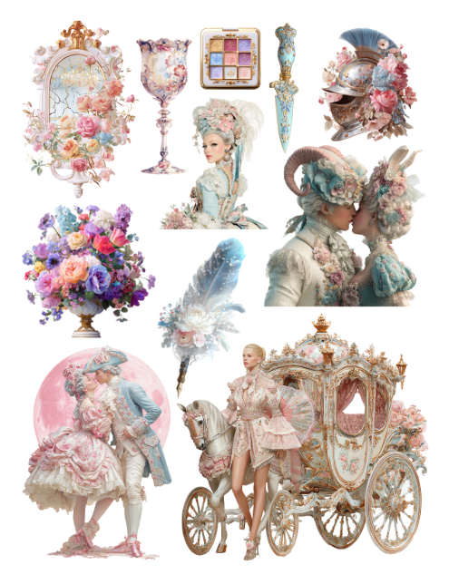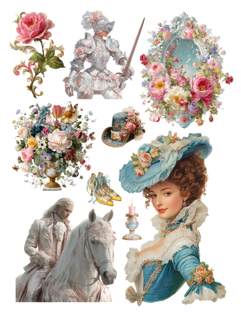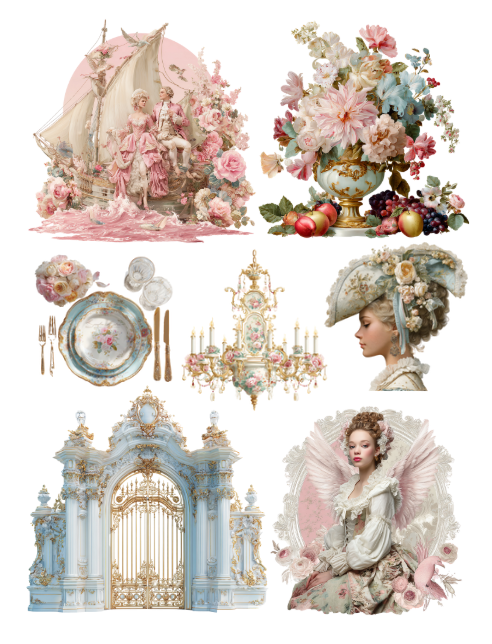 Rococo Romantasy Ephemera to Cut and Collage PDF Printable