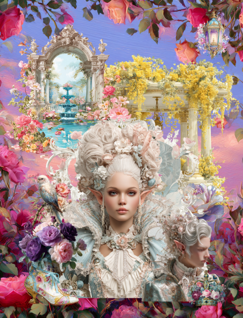 This is the perfect book people who love Rococo and French style with a touch of fashion magazine thrown in. Chock full of lovers, handsome gentlemen, beautiful ladies, makeup, furniture, rooms, gardens, flowers, battle gear, fae, horned people, angel wings, thrones and crowns, and more in the romantasy genre. Can you even imagine how fun a decorated planner would be with these elements? Completely unique and on trend.