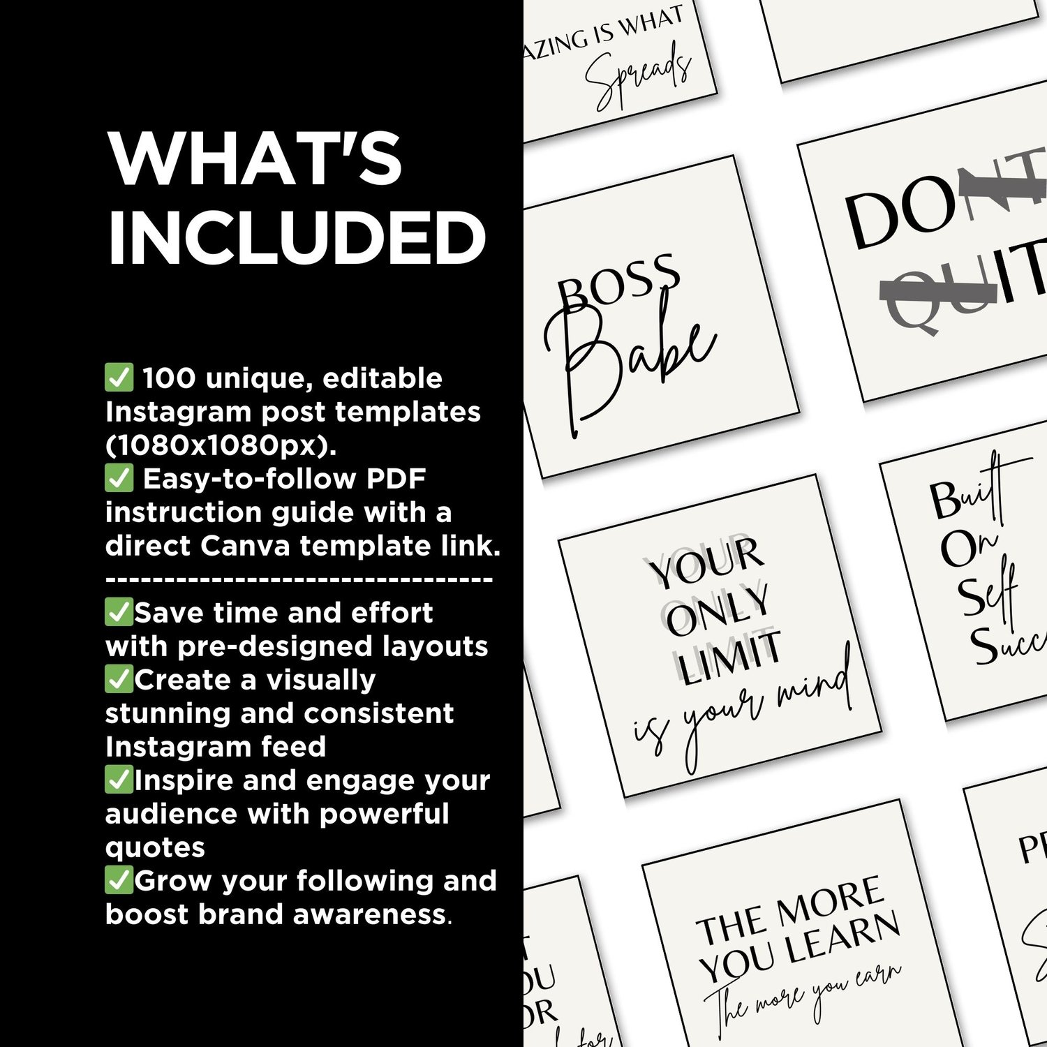 Ready to captivate your audience with inspiring content? Our collection of 100 Instagram Inspirational Minimalist Motivational Quote Templates is exactly what you need!