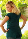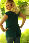 Don’t let the end of winter mean the end of your knitting! This casual spring sweater is the perfect project to knit and wear when the weather gets warm. Worked in a lightweight yarn, it features simple details to make a basic tee something special: a keyhole neckline, cap sleeves, and a pleat at the back covering a bit of lace.