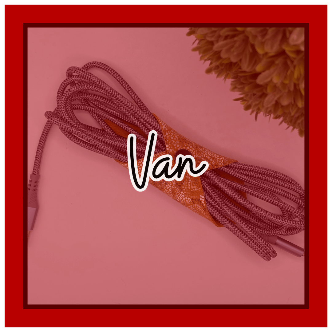 Van is your ride-or-die for taming unruly cords — from laptop chargers to those outrageously long USB-C beasts. With a wide 3.5" x 3.5" leather square and a diagonal 12mm snap, he wraps around like a pro.