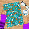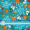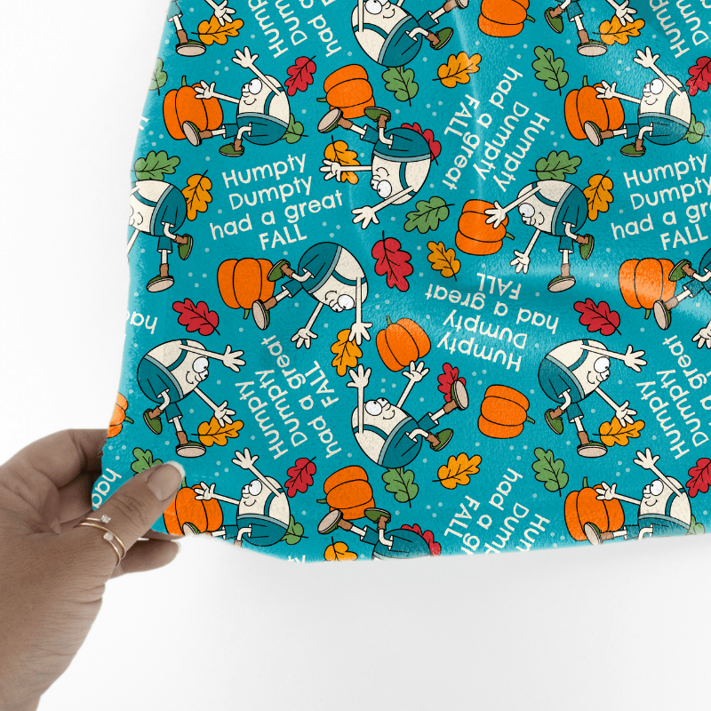 Humpty Dumpty had a great fall, with pumpkins and autumn leaves on blue.