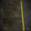 Statement upcycled wallet featuring an authentic Louis Vuitton LV leather patch securely riveted to the exterior. The patch was repurposed from a genuine Louis Vuitton item and applied to a non-LV handcrafted wallet, creating a one-of-a-kind piece.