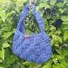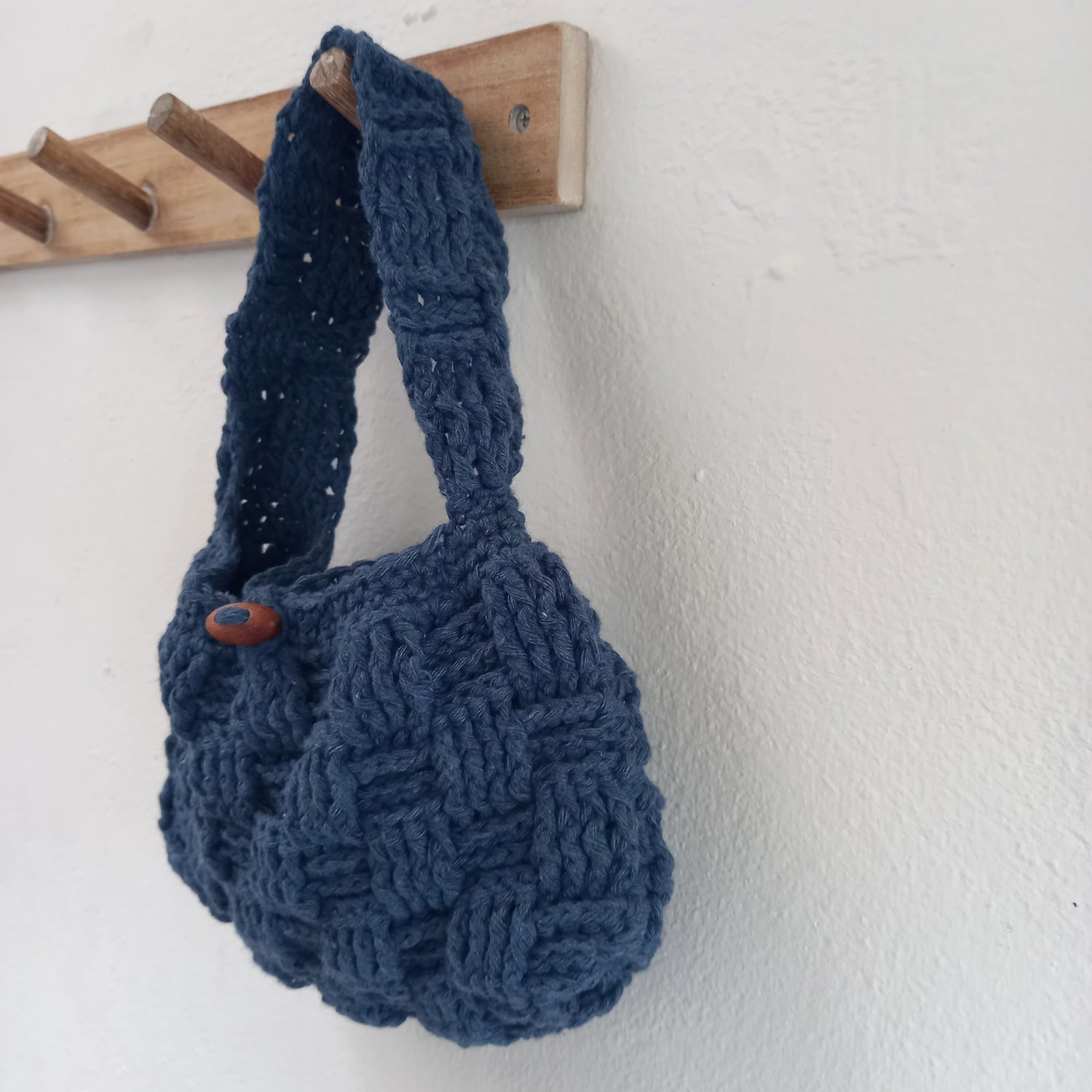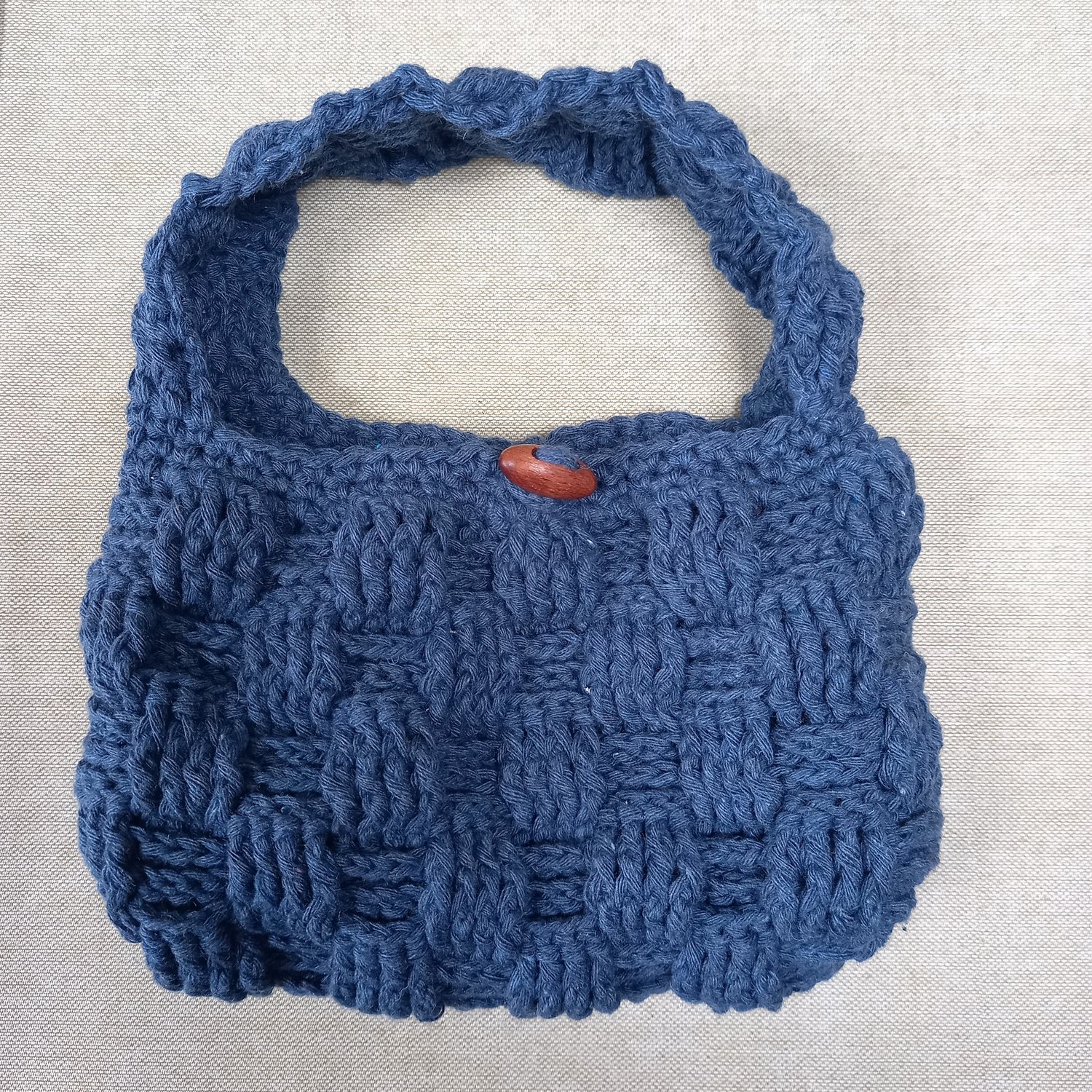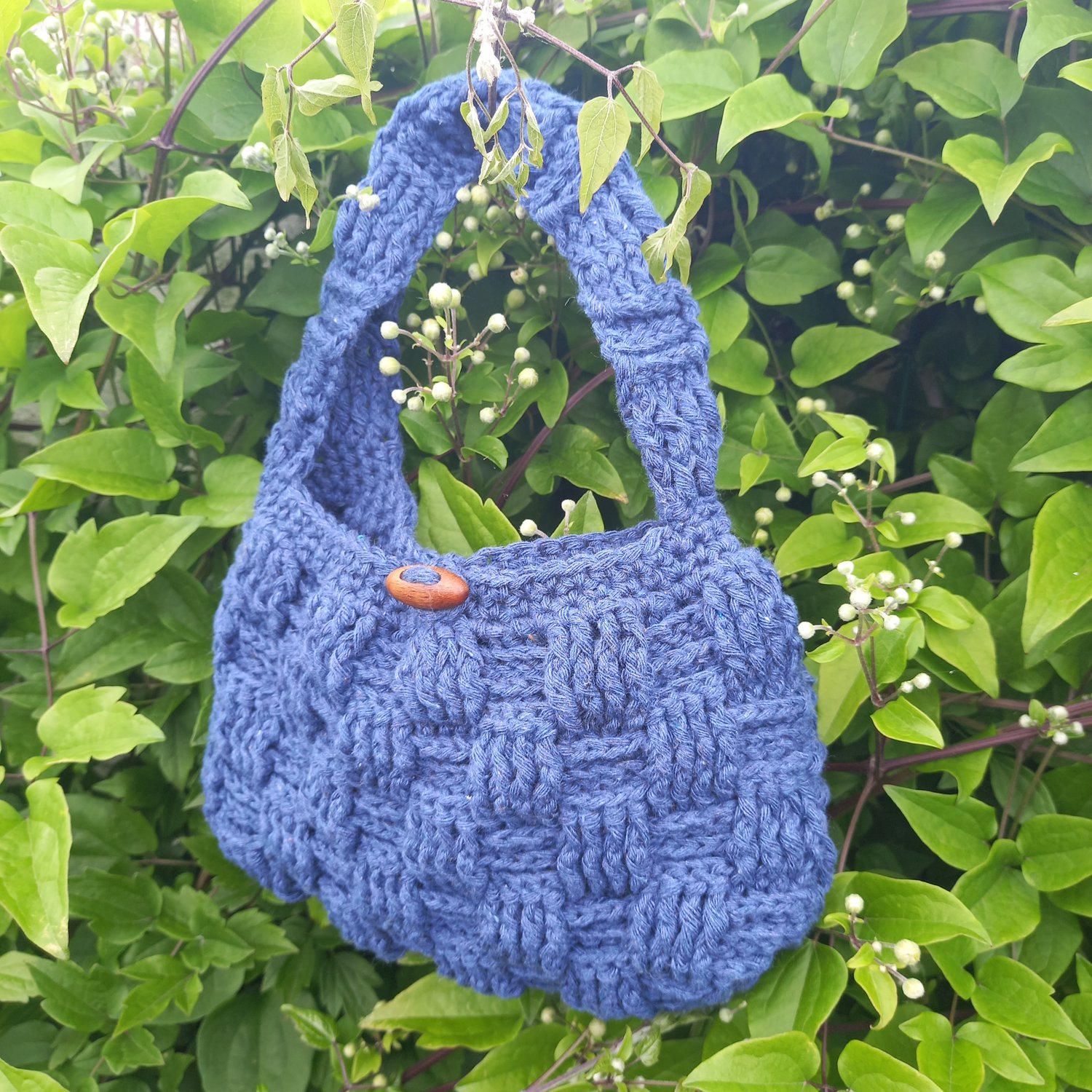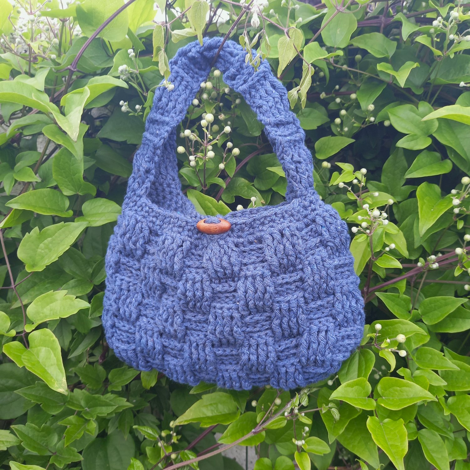 Instructions to make a textured basket stitch bag, in cotton Aran yarn.