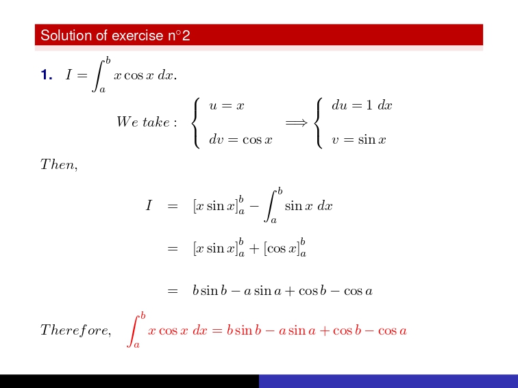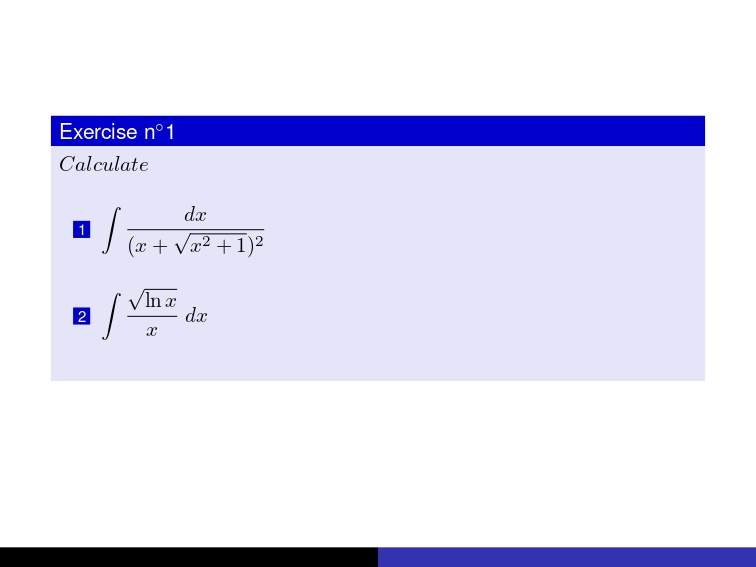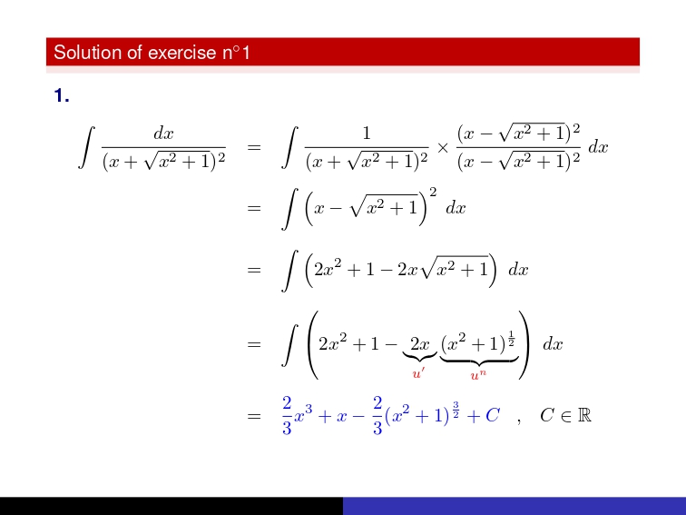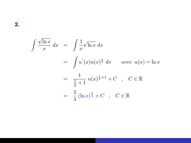 - A variety of exercises covering different methods of calculation (substitution, integration by parts, rational fractions, trigonometry, etc.).