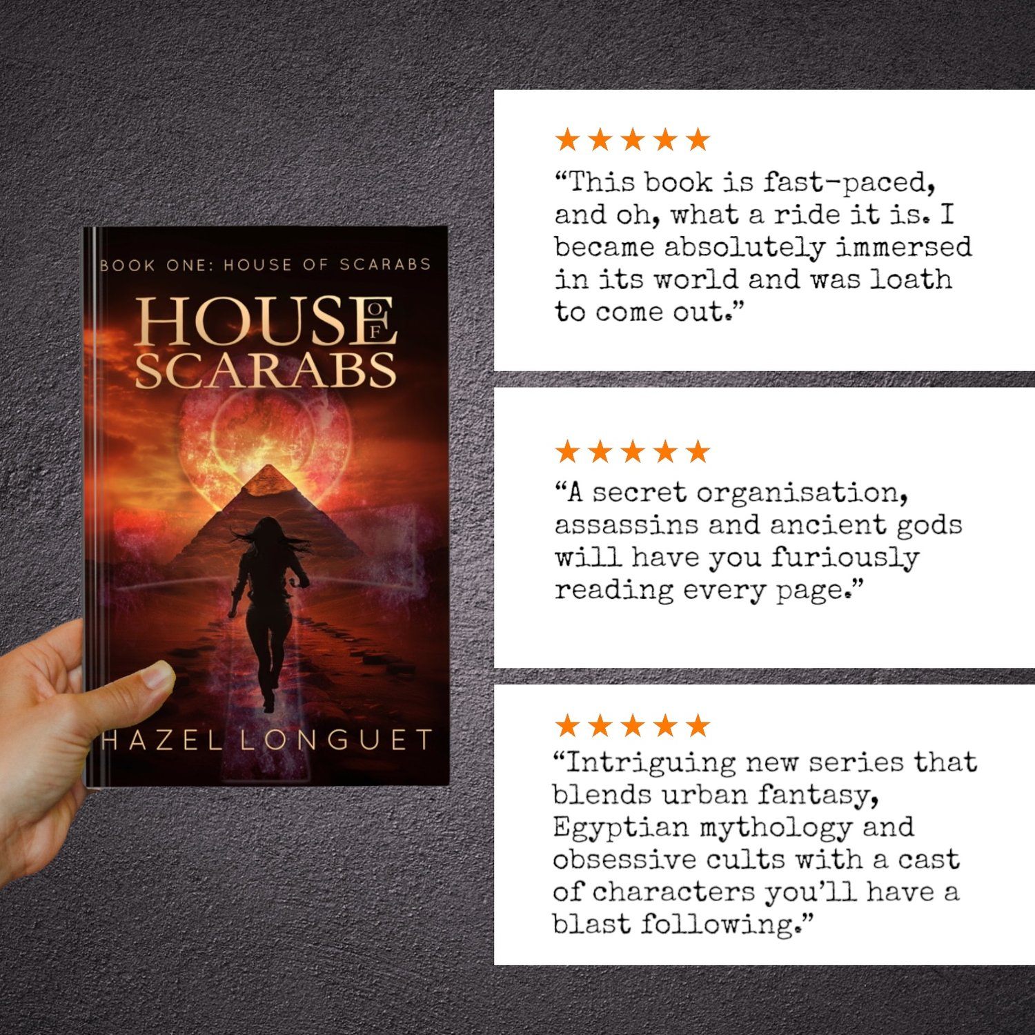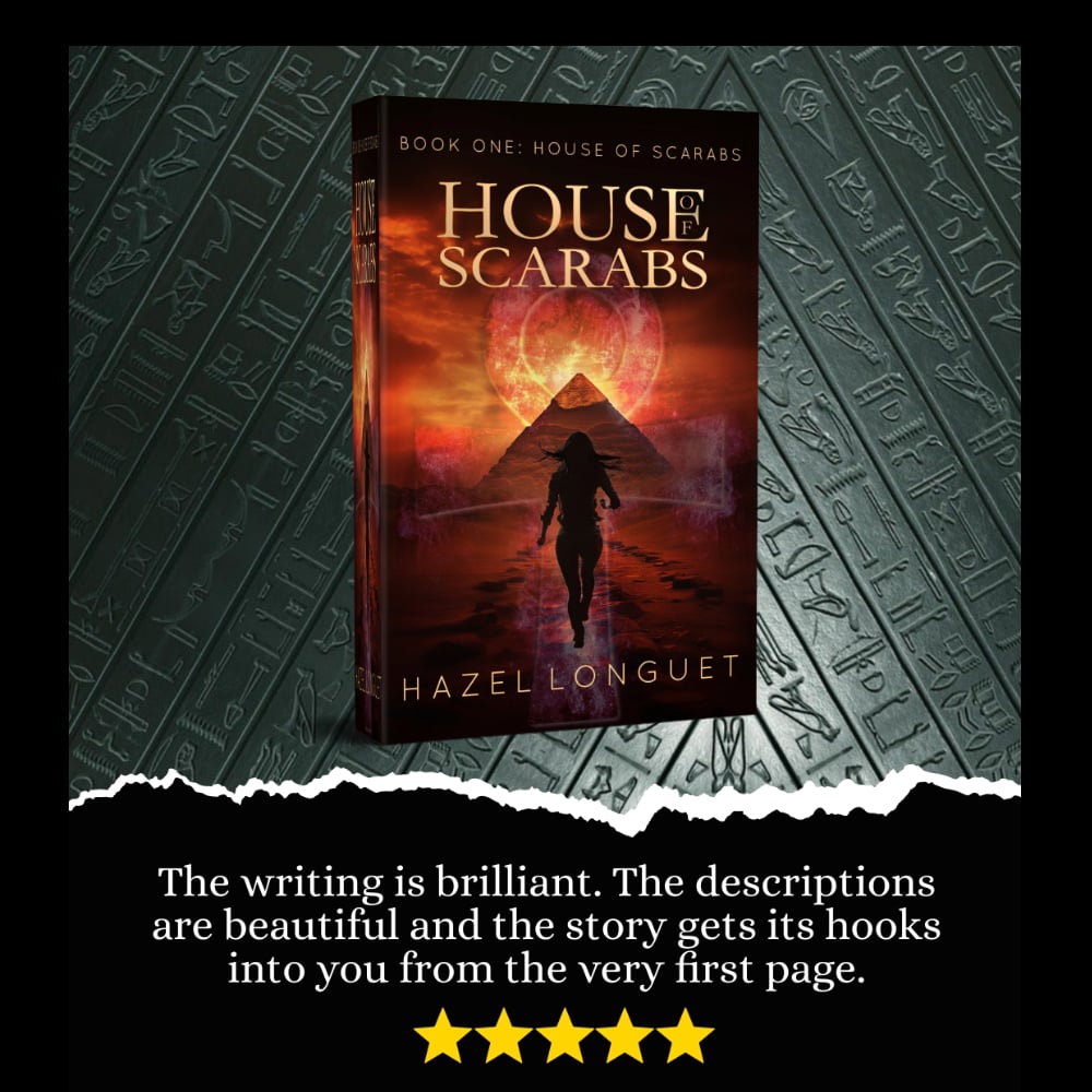 House of Scarabs is the first book in the supernatural fantasy series, House of Scarabs. If you like ancient mythology, paranormal adventures and magical quests, then you’ll love Hazel Longuet’s fast-paced novel!