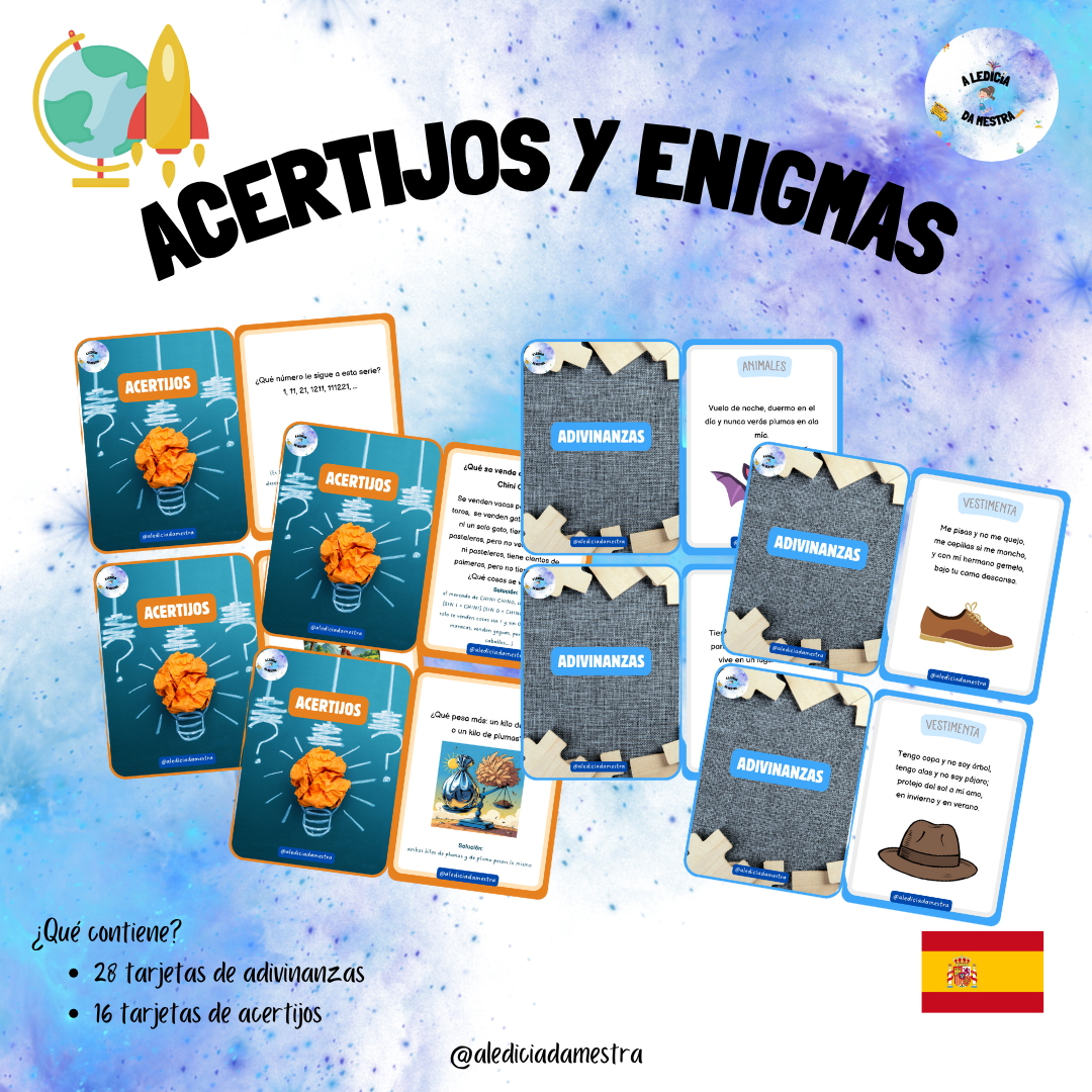 Aquí te dejo el juego de cartas de adivinanzas y acertijos, diseñado para niños, jóvenes… ¡y también adultos!