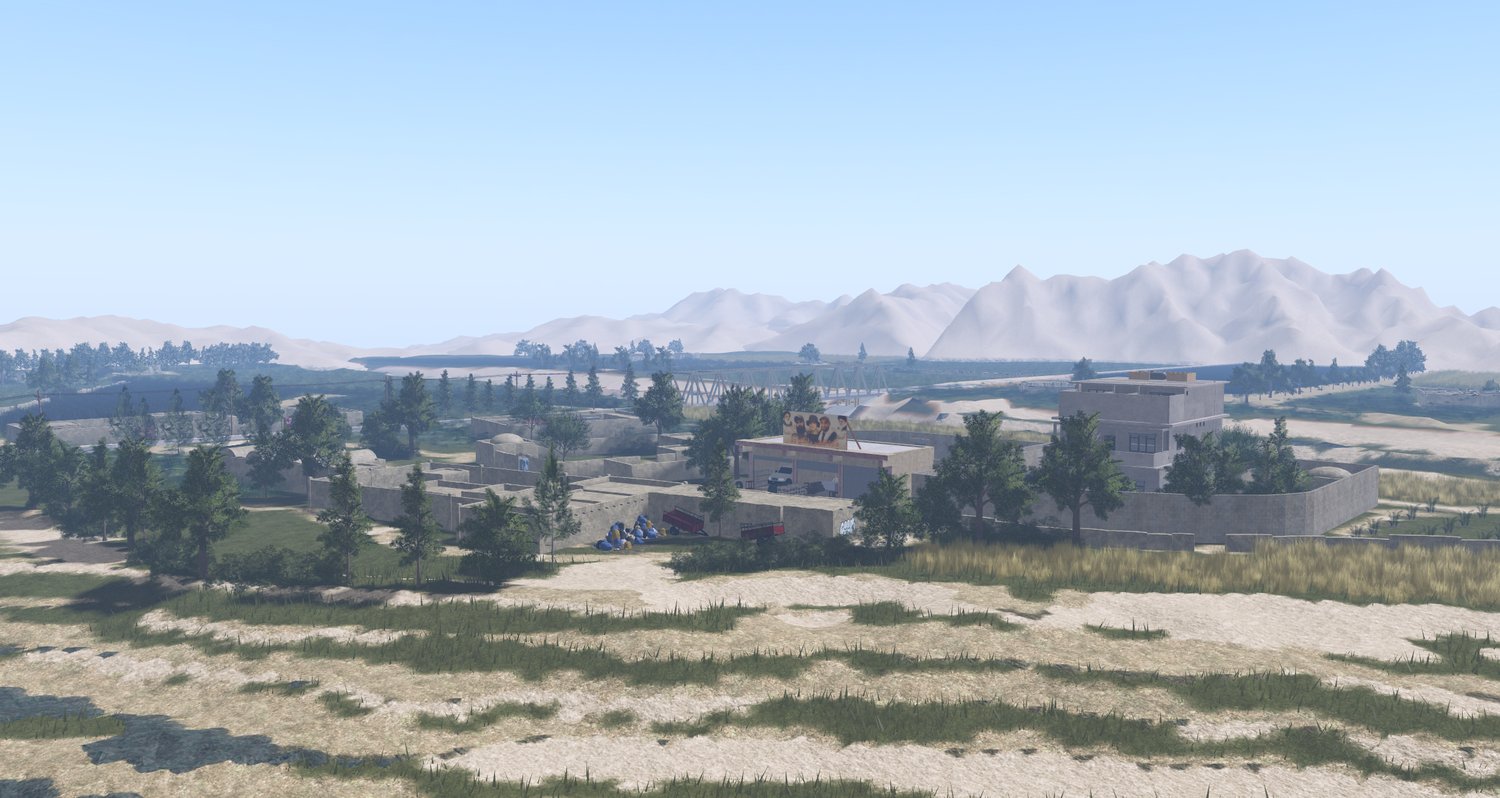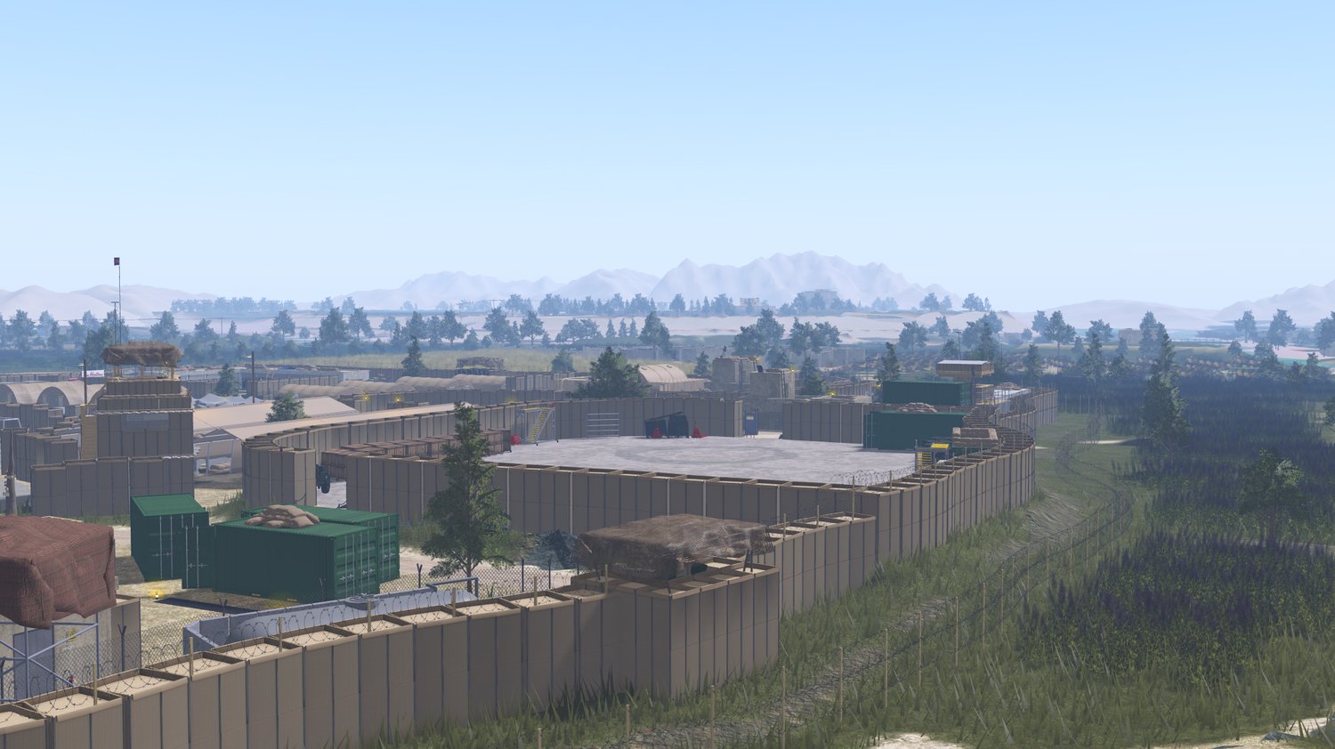 Forward Operating Base with heli-pads, field hospital, kitchen and dining area, and a parade square.