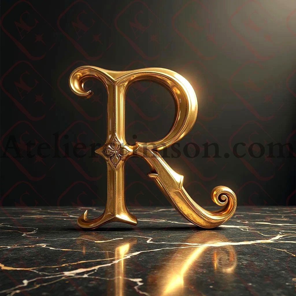 The letter R Gold victorian marble Download Now and elevate your space with our stunning AI-generated characters, featuring a luxurious metallic finish. Each character boasts a stunning three-dimensional appearance with intricate details. The elegant textured floor adds a touch of luxury, making this a truly unique and eye-catching piece. Perfect for a luxurious touch in your interior.