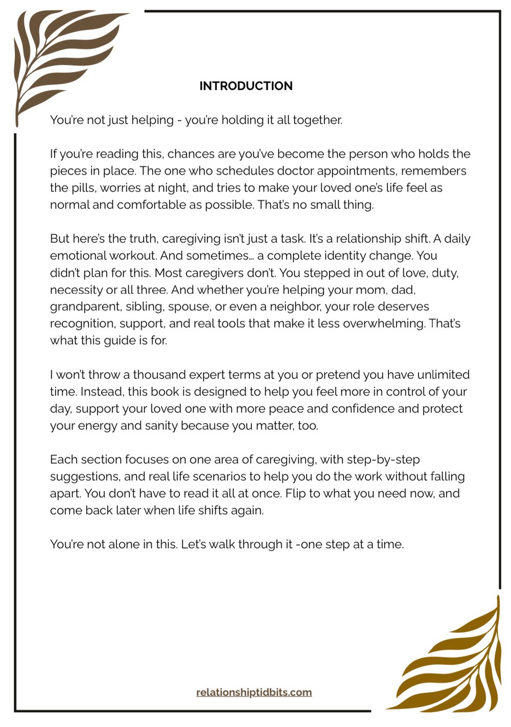 - A structured, easy-to-follow caregiving downloadable 9 Chapter PDF e-book