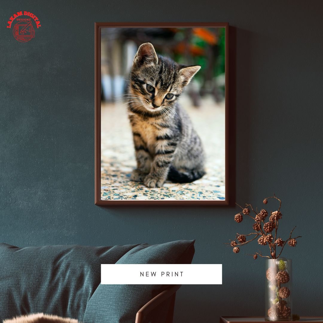 Cute Kitten digital wall art , just download and print the size you want ideal for living room , bedroom ,office or wherever you like .Sizes available (A0-A5) Should you require a different size please contact me.