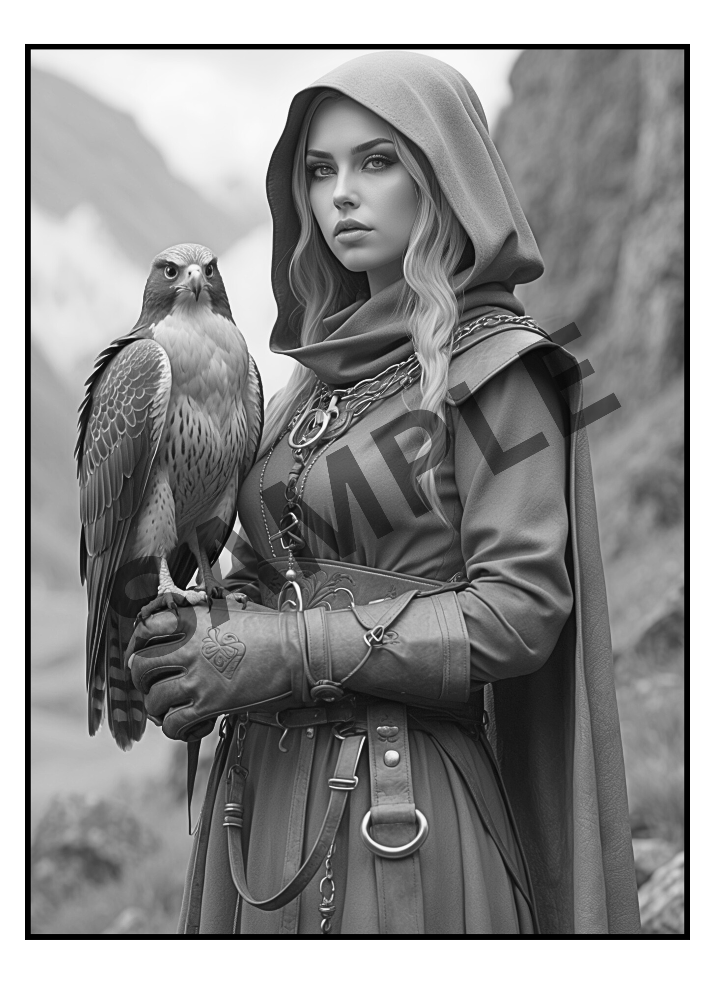 "Fantasy & Fairytales Adult Greyscale Coloring Book" is a collection of Highlanders & Maidens, Sirens & Mermaids, Warriors & Warlocks, Goddesses & Familiars. The adventure awaits of stories untold.