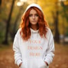 Ginger Woman, Women's Blank White Hoodie Sweatshirt Mockup Photo, Autumn Background