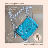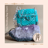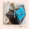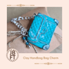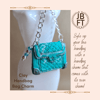 I hand crafted this handbag charm using oven bake clay, it's a vibrant turqoise blue, has a quilted texture and I took inspo from the legend... (wait for it) ...ary - Coco Chanel.
