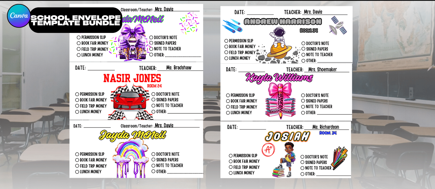 This bundle includes 6 fully editable envelope front cover templates designed to fit standard sized envelopes. Whether you’re organizing classroom handouts, sending home notes, or gifting teachers and students, these envelopes add the perfect professional touch.