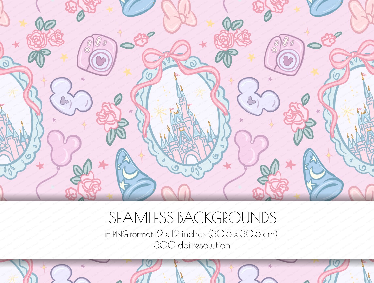 1 Disney Floral Magic Kingdom Seamlessbackground in PNG format 12 x 12 inches (30.5 x 30.5 cm) 300 dpi resolution .