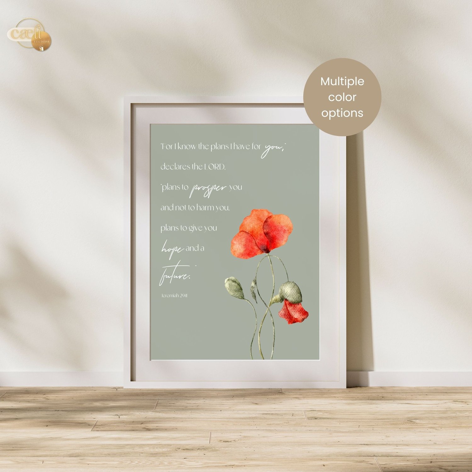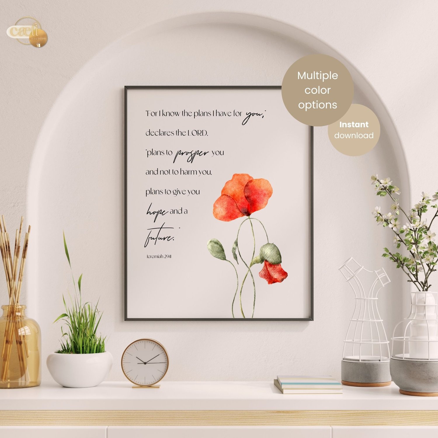 Jeremiah 29:11 Scripture Verse | For I know the plans I have for you | Printable Wall Art