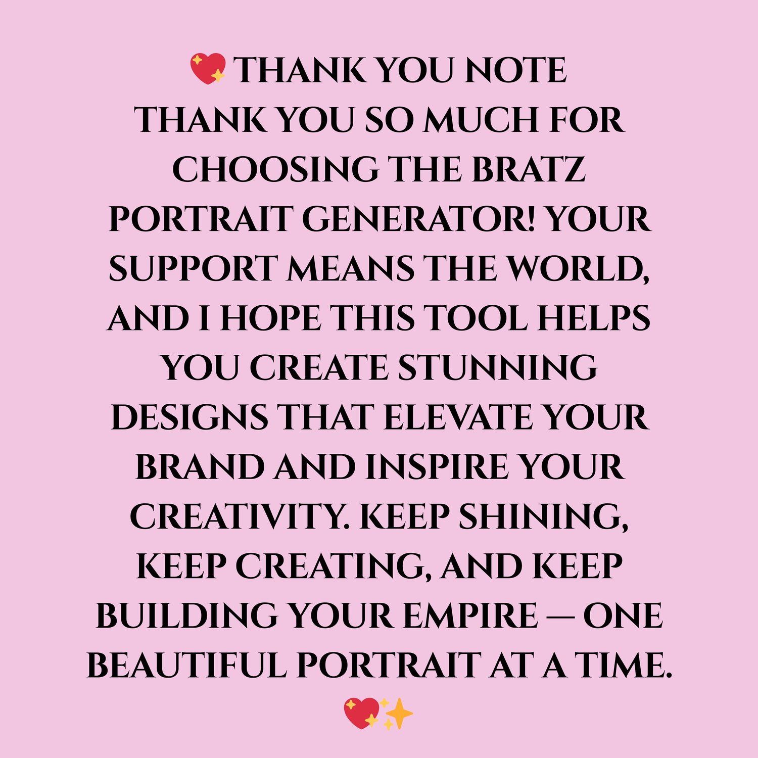 This generator handles the structure for you so you can focus on creating beautiful art — quickly, consistently, and with that signature glossy Bratz attitude.