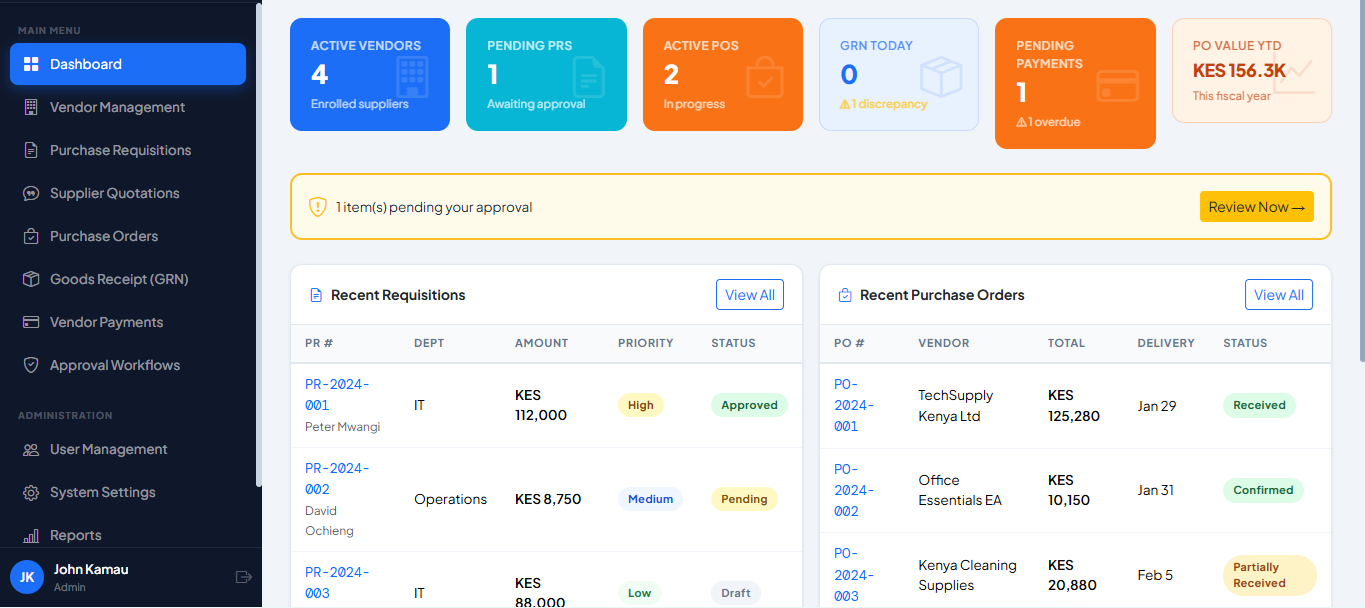 Procurement System | Purchase Orders, Vendor Management & Supply Chain Automation