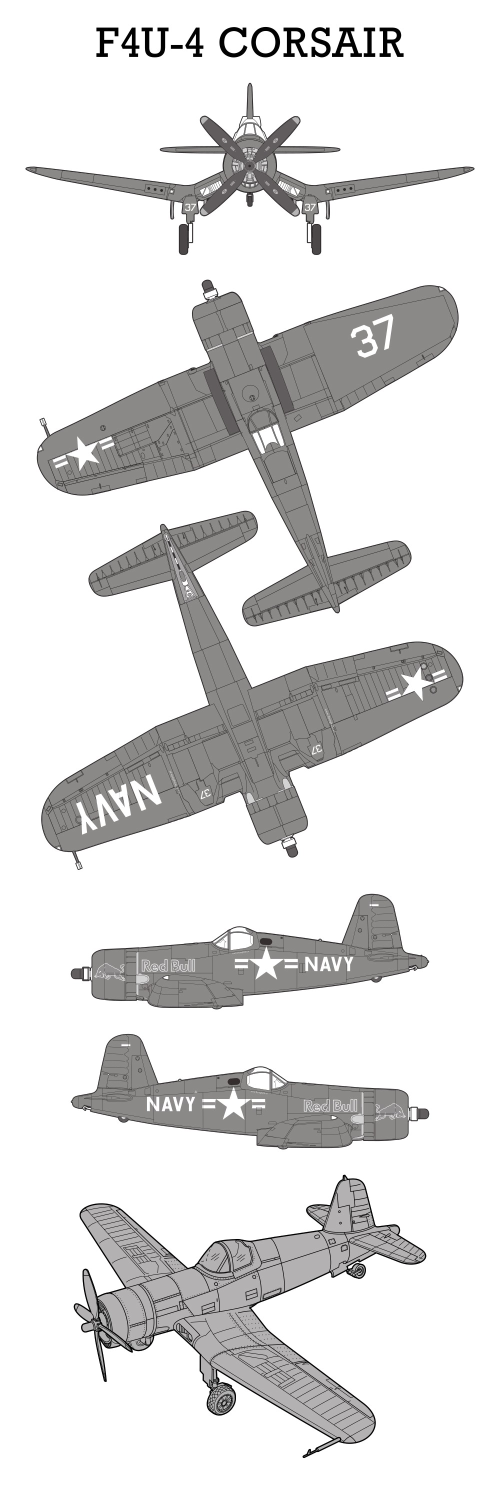 F4U-4 CORSAIR Car Blueprint PDF SVG Vector Drawing.