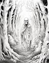 Cursed Forest: Step into a cursed forest where twisted trees form haunting silhouettes against a moonlit sky, inviting you to add your own shades of darkness.