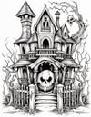 Gothic Haunted House: Dive into a world of shadows with a chilling depiction of a towering, decrepit haunted mansion. Cracked windows, twisted trees, and a full moon casting an ominous glow set the stage for a spooky coloring experience.