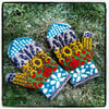 The flower harts can be mixed and matched as you wish. There are four flower charts, sunflower, poppies, lavender and almond flower. Use charts and colours according to your taste and stash. Both mitten and thumb length can be easily adjusted.