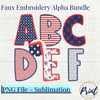 Patriotic Faux Embroidery Alphabets PNG Digital Download
