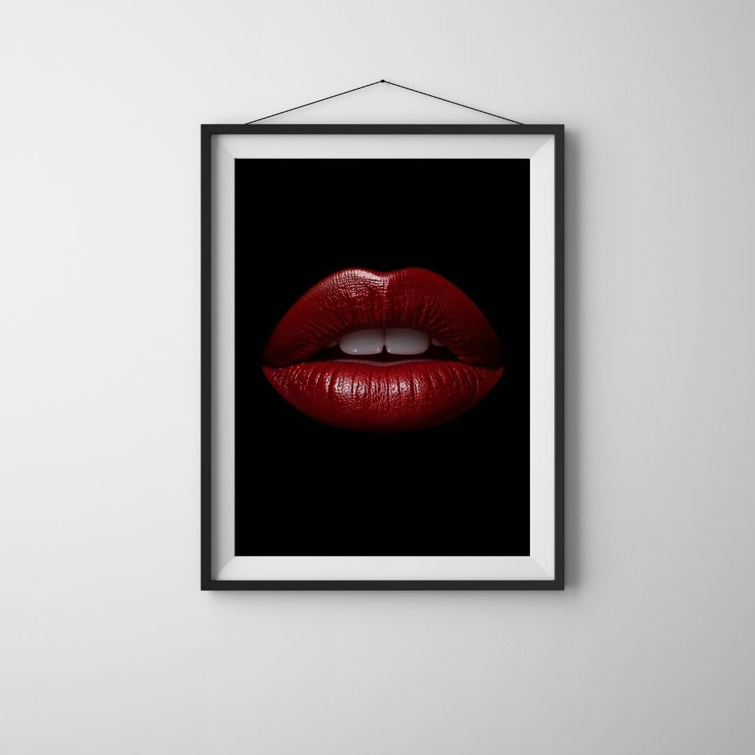 Red Lips Wall Art – Modern Beauty Print, Glam Lipstick and Vanity Décor Download
