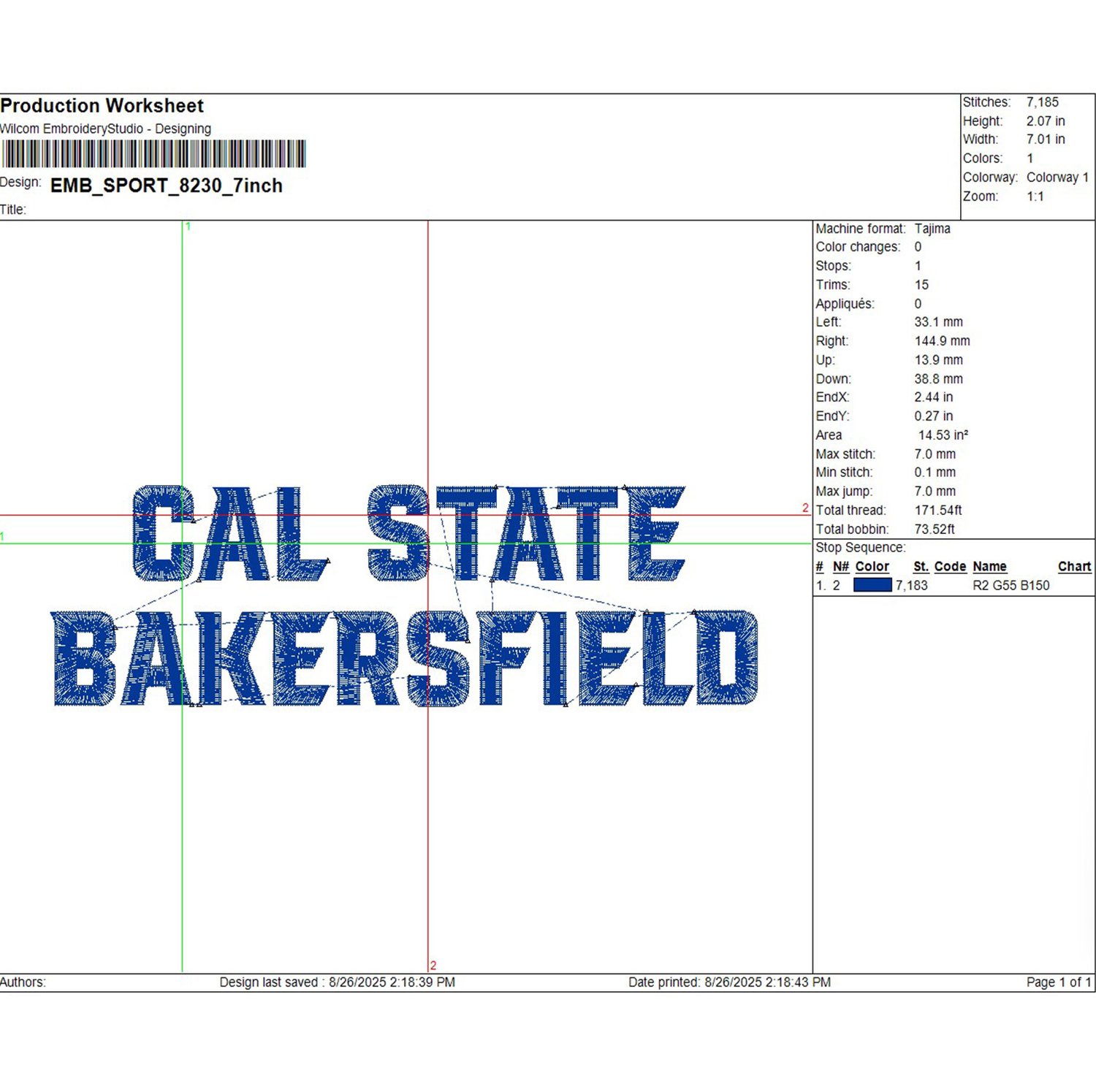 NCAA Cal State Bakersfield College Football Team Wordmark Logo Embroidery Designs, Ncaa Embroidery Files, Cal State Bakersfield Roadrunners Team Logo Embroidery, Game Day Machine Embroidery Design, Digital Download